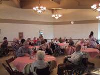 The activities director greeted us with an exuberant smile eager to watch her "folks" and their families enjoy a great BBQ luncheon. She approached us with wide eyes to inform us that the phone had been ringing off the hook with more families calling to ask if it was still OK to come and bring a few more...you could tell from the look on her face that she was definitely worried about the prior numbers that she had told us to cook for...Tom and I assured her to tell everyone that they were welcome!!