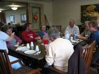At 11:00 am the staff came out for the first request. Some residents needed special processing of their meal. So, we loaded them up with pork and chicken, along with beans. The next round of serving started at 12:00. The parking lot quickly filled with carloads of happy families looking forward to having a bbq with the family members that they cared so much about. By 12:30, the building was full of excitement, and people. The residents were dressed up, and the feast was fully underway. The feast went on for 2 hours. People from infants to residents over 100 years old gathered. One resident demanded ribs, as another woman waited by the door eagerly awaiting her sons arrival. By 2:30 everyone was full, and happy to have spent the afternoon together with loved ones.
